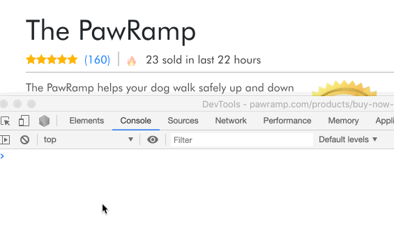 Before today, I'd never heard of pawramp.com. I ended up there because I was considering buying one of their products as gift. When I ended up on a product page, I couldn't help but notice the blinking 🔥and the impressive stat that "65 sold in last 11 hours".